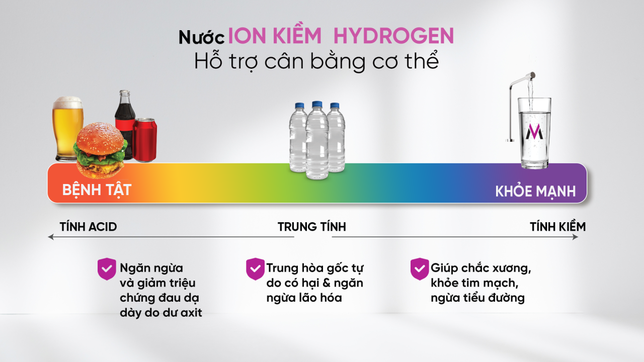 CÂN BẰNG CƠ THỂ NHỜ NƯỚC ION KIỀM HYDROGEN GIÀU KHOÁNG CHẤT